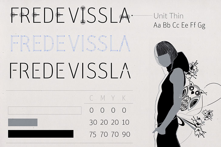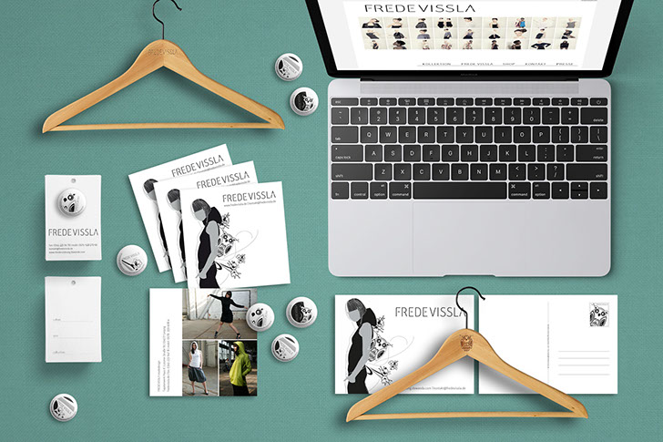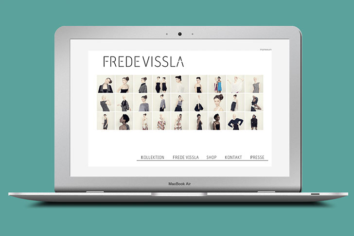 Entwicklung eines Corporate Designs für das Fashion Label Frede Vissla mit Anwendungen auf Visitenkarten, Brief- & Rechnungspapier, Flyer und Website.