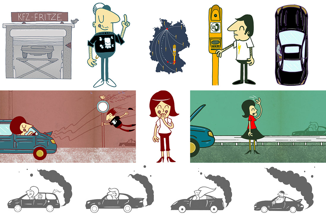 Illustrationen & Infografiken, die die sehr technischen Darstellungen der Wissensseite der ADAC - Motorwelt, emotionaler und verspielter wirken lassen.