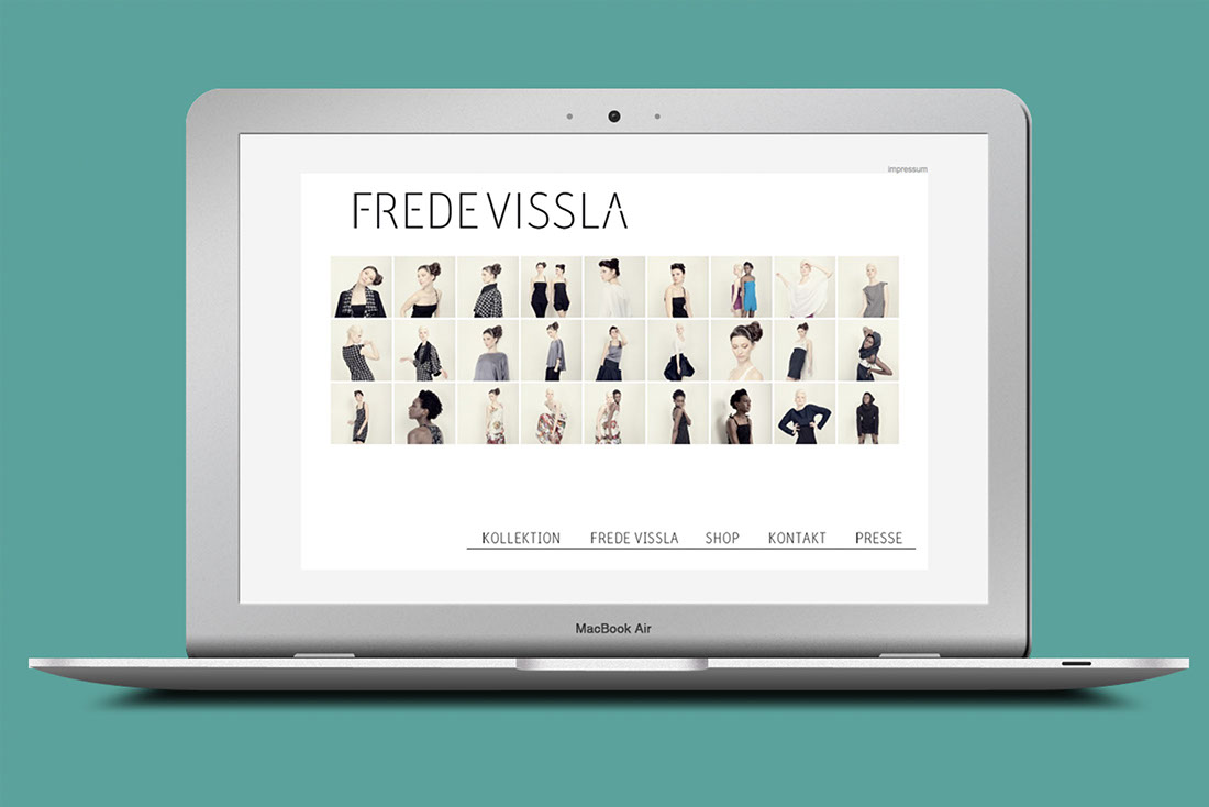 Entwicklung eines Corporate Designs für das Fashion Label Frede Vissla mit Anwendungen auf Visitenkarten, Brief- & Rechnungspapier, Flyer und Website.