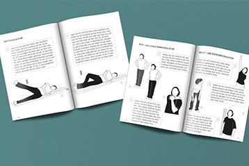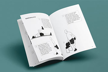 Illustrierte Broschüre für Senioren, die Anleitungen zu Sportübungen vermittelt.